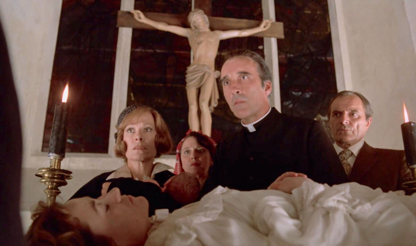 The daughter (an unconscionably cast teenage Natassja Kinski), is under the spell of Christopher Lee’s stone freak of an excommunicated Catholic priest. Kinski and Widmark seem more annoyed than anything, and reportedly realized during shooting that this was going to wind up exploitative trash. The author of the original novel refused to let Hammer Films ever adapt his work again, but Lee - who championed the material - sure sells his end of the product. Much of the movie is him reducing people to blubbering messes via phone. Spoiler: Daughter ends with someone throwing a rock, then a photo negative still, and, finally, a bible quote. THREE BAGS OF POPCORN.