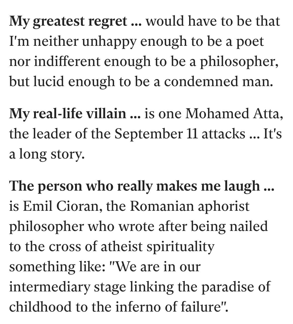 This is where the zen comes in handy. Once you’ve accepted that your state of mind and your lot in life are two distinct things, you can have faith in the value of existence even when you can’t appreciate the wonders around you. Maybe you’ve heard of the Stockdale paradox, that Admiral James Stockdale survived years of torture in a POW camp by being brutally honest about his current situation and refusing to have faith in anything more than the necessity of surviving. Since the release of Bruce Springsteen’s memoir, I’ve seen people ruminating on what I’d call the Springsteen paradox, that few men have ever had it as good as Bruce Springsteen did in the early ‘80s, but he still required psychiatric help with crippling depression and finding a reason to live. Put these paradoxes together and the takeaway is clear: where you are and what you’re feeling can affect each other, but they are not the same thing. You can desperately need help in your life, and you can desperately need help with how you're experiencing it. You have every right to ask for help with either. But life and how you experience it are not the same thing. And from this validation of all pain, we can also assume that happiness and the beauty of life is always there, even when it feels inaccessible.